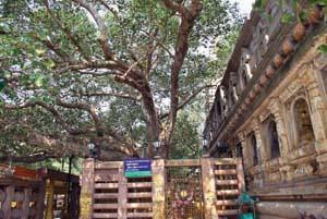 Situated to the west on the back of the main temple there is an ancient Peepal tree (Ficus Religiosa) or Bodhi tree where Buddha attained enlightenment on the full moon day of Baisakh Poornima. The present tree is said to be a descendent of the original tree as it was destroyed a few times in the past by man made miseries and natural calamities. Seeds from the original sacred tree are said to have been taken and planted in many countries in monasteries and homes of pilgrims to be venerated there.