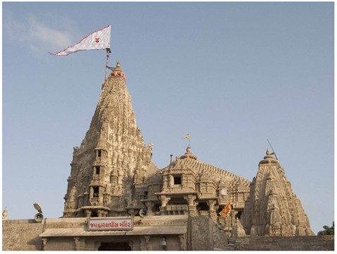 Dwarkadheesh temple is also popularly known as Triloksundara temple. The temple is constructed in Chalukya style. The stones used in its construction are hewn style owing to the presence of saline air. The main gate is known as Moksha Dwar through which all the devotees enter inside the holy abode. As per the ritual, the devotees are required to have a spiritual bath in the River Gomti before entering the temple premises, via Swarga Dwar entrance. This is on the side of the River Gomti that flows behind the river. Again, the 56 sidis (steps) present here have a religious significance as they represent 52 Yadava of the administrative divisions and four gods – Krishna, Balarama, Pradyuman and Anirudhha.