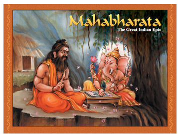 Mahabharata is the grand epic in which Sage Vyasa [व्यास] has revealed everything about the world [“व्यासोच्छिष्टम् जगत् सर्वम्”]. Legend says that this book was written by Lord Ganesh while Sage Vyasa [व्यास] was narrating it. Vedic literature is in a very ancient language and full of descriptions of sacrifices and other rituals. Mahabharata however is in simple and easy Sanskrut language so it is quite understandable by common people. While narrating the Great War between Kauravas [कौरव] and Pandavas [पाण्डव], it also tells us about the social, cultural and historical backgrounds of that time. On account of this, Mahabharata has a great literary importance. It has been and being studied by many Indian as well as foreign scholars. Mahabharat is famous as fifth Veda. The world famous Bhagvadgeeta”[भगवद्गीता] is part of the Mahabharata.