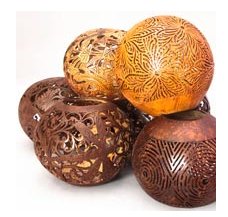 Owing to the abundance of coconuts in Kerala, coconut shell craft is very popular and in demand in the state of Kerala. Calicut district is the primary hub for coconut shell craft. The most common products from coconut shell are flower vases, snuff boxes, cups, nut boxes, sugar basins and spoons. Brass embedded coconut shell products are also gaining in popularity.